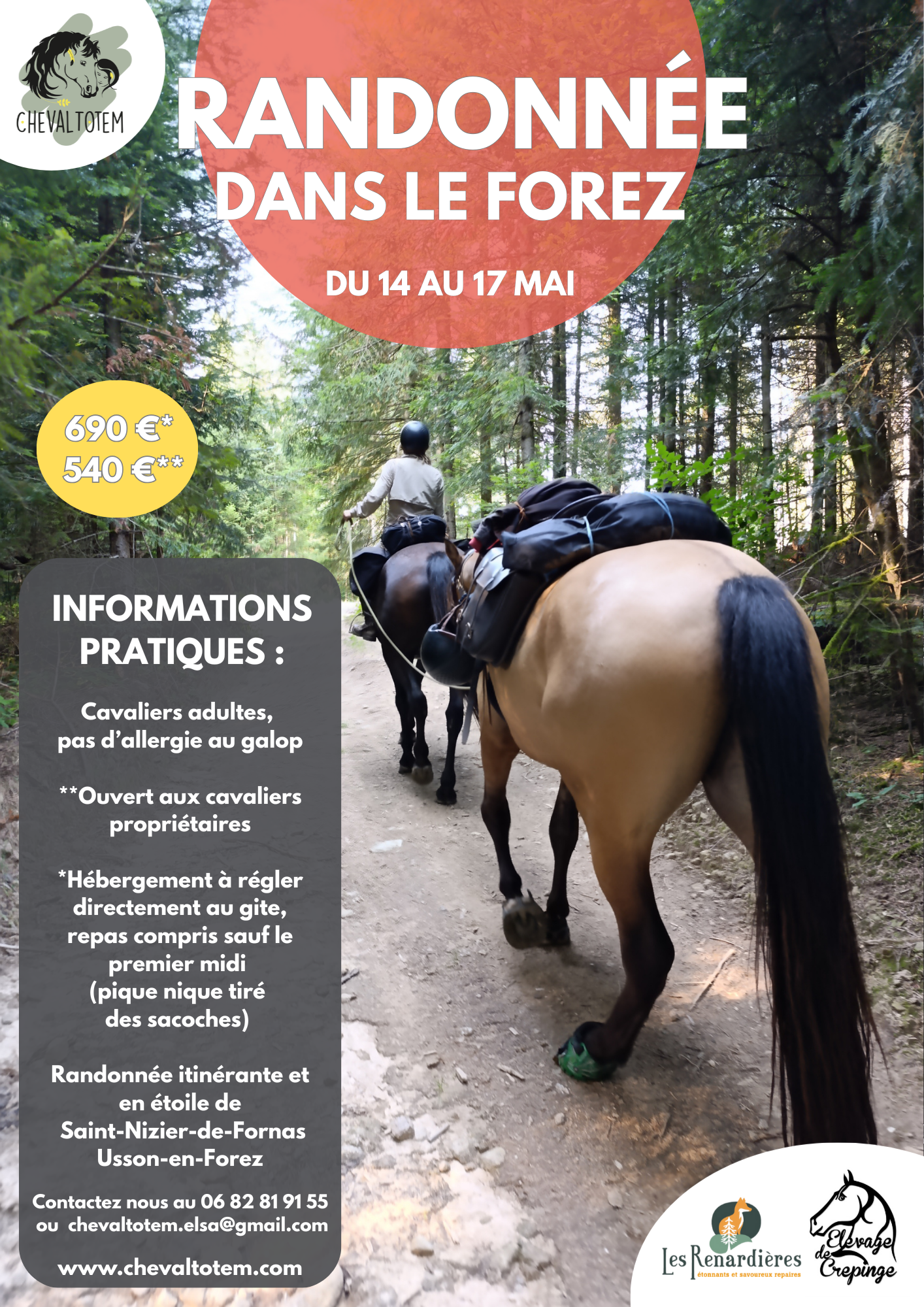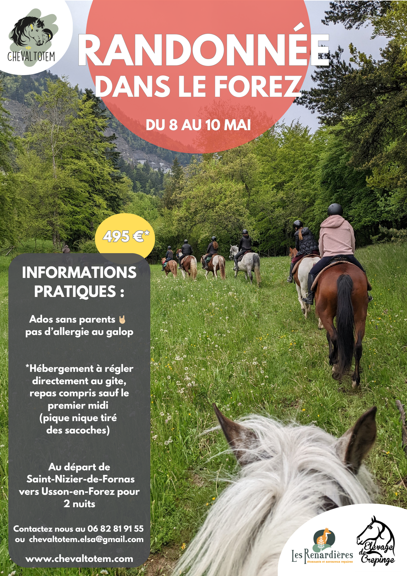 Avec le retour des beaux jours, nous vous proposons trois randonnées équestres au cœur du Forez. Entre forêts, plateaux et grands espaces, venez partager des moments privilégiés avec votre cheval ou un cheval d’école, dans une ambiance conviviale et dépaysante.